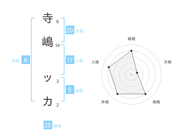 寺嶋 ッカさんを姓名の画数から五運を鑑定