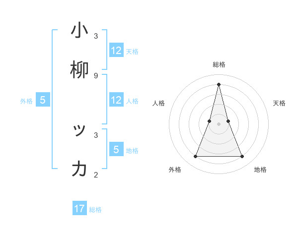 小柳 ッカさんの天格は12画の1点!