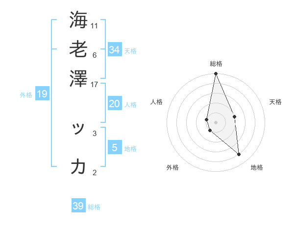 海老澤 ッカさんを姓名の画数から五運を鑑定