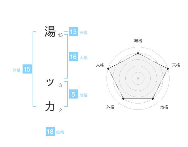 湯 ッカさんの天格は13画の5点!