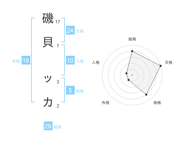 磯貝 ッカさんを姓名の画数から五運を鑑定