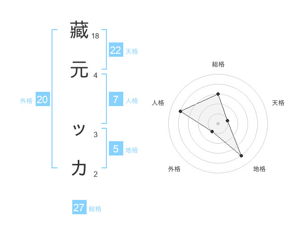 藏元 ッカさんの総格は27画の3点!