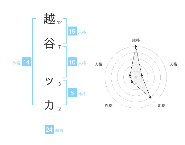 越谷 ッカさんの総格は24画の5点!