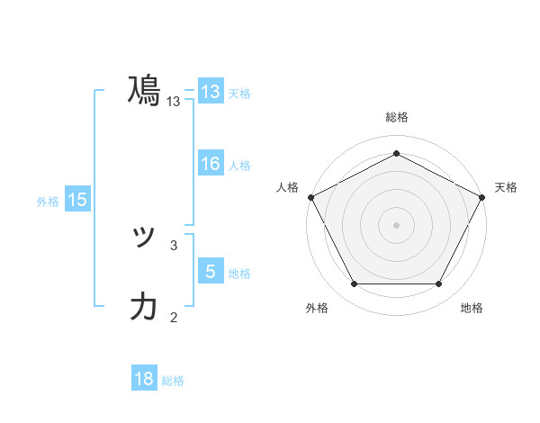 鳰 ッカさんの天格は13画の5点!