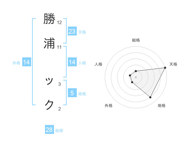 勝浦 ックさんを姓名の画数から五運を鑑定