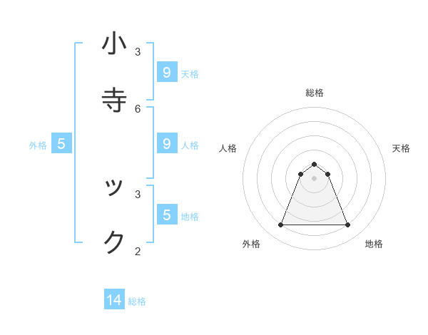 小寺 ックさんの地格は5画の4点!