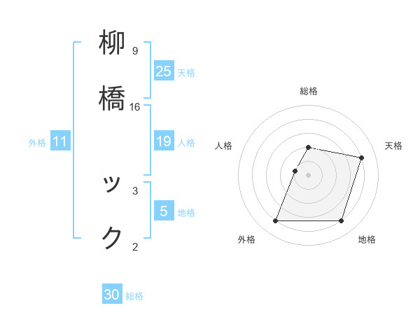 柳橋 ックさんを姓名の画数から五運を鑑定