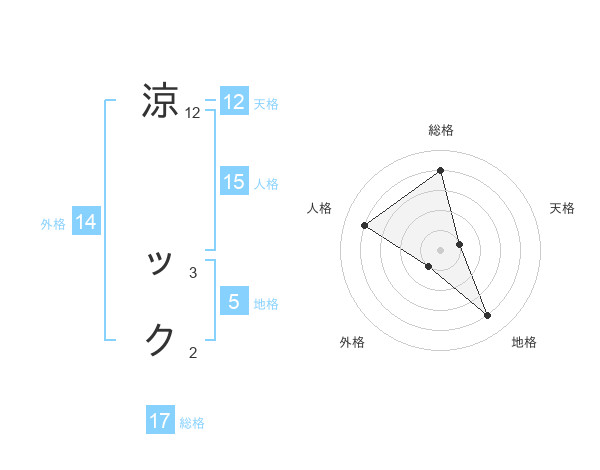 涼 ックさんの総格は17画の4点!