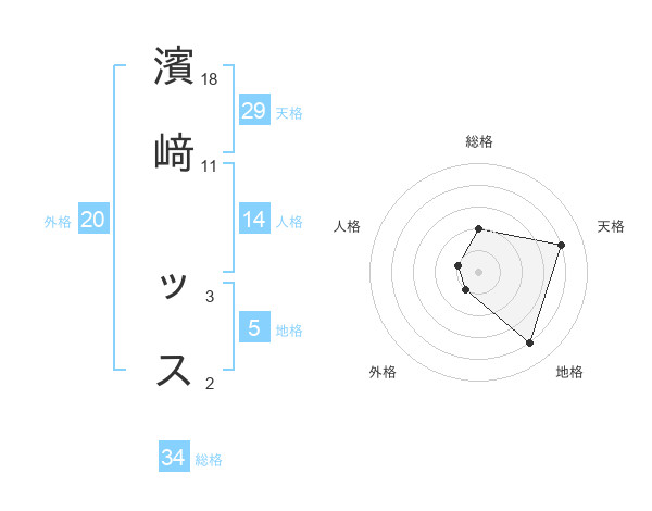 濱﨑 ッスさんの天格は29画の4点!
