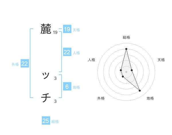 麓 ッチさんの天格は19画の1点!