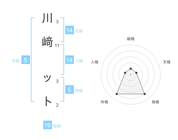 川﨑 ットさんを姓名の画数から五運を鑑定