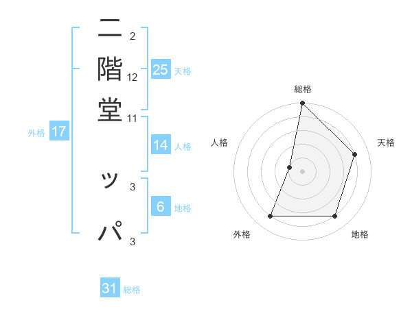 二階堂 ッパさんを姓名の画数から五運を鑑定