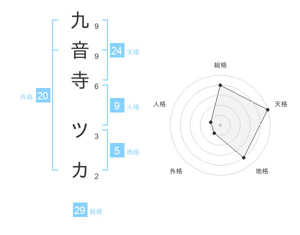 九音寺 ツカさんを姓名の画数から五運を鑑定
