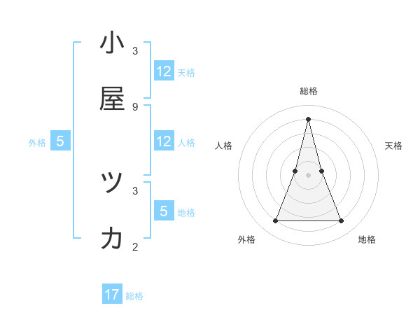 小屋 ツカさんの総格は17画の4点!