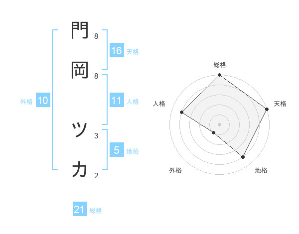 門岡 ツカさんを姓名の画数から五運を鑑定
