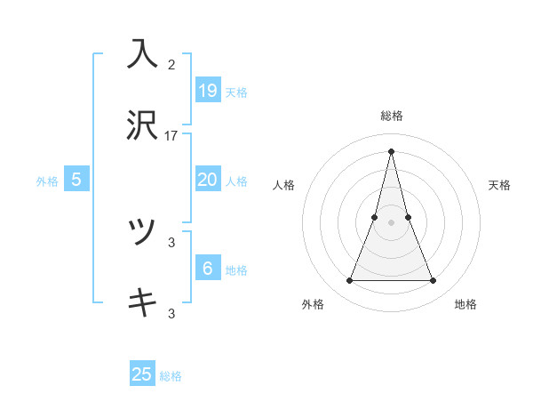 入沢 ツキさんの総格は25画の4点!