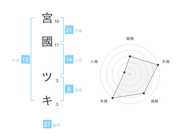 宮國 ツキさんを姓名の画数から五運を鑑定