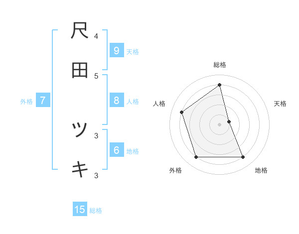 尺田 ツキさんの総格は15画の4点!