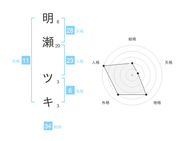 明瀬 ツキさんを姓名の画数から五運を鑑定