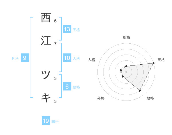 西江 ツキさんの天格は13画の5点!