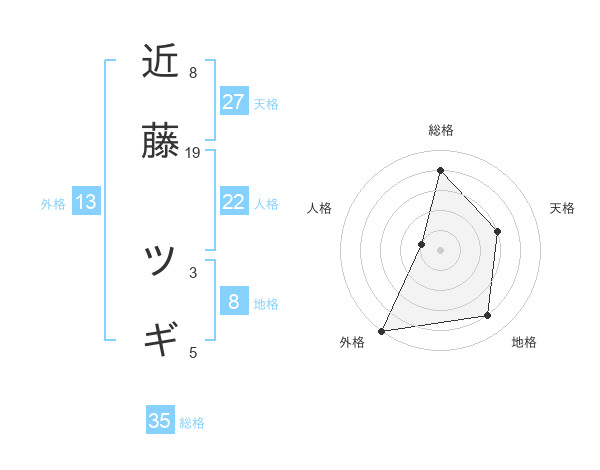 近藤 ツギさんを姓名の画数から五運を鑑定