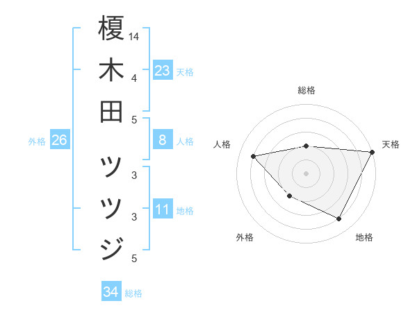榎木田 ツツジさんの天格は23画の5点!