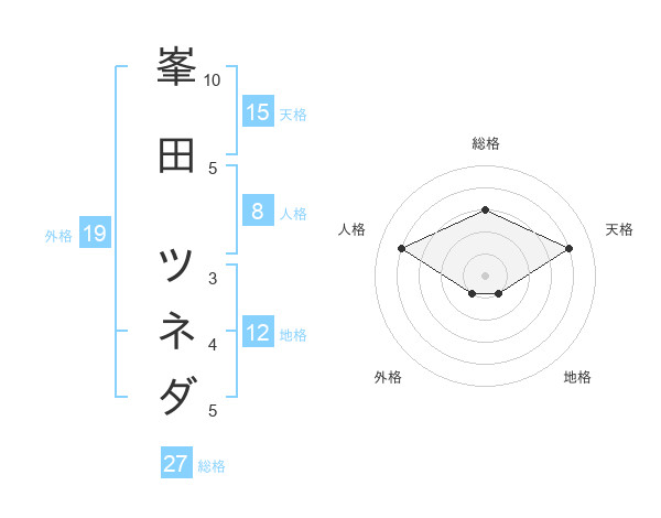 峯田 ツネダさんを姓名の画数から五運を鑑定