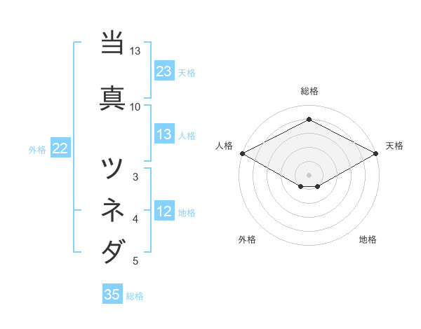 当真 ツネダさんの天格は23画の5点