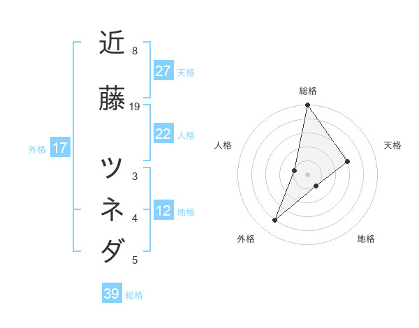 近藤 ツネダさんを姓名の画数から五運を鑑定