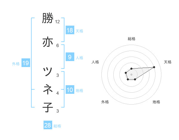 勝亦 ツネ子さんを姓名の画数から五運を鑑定
