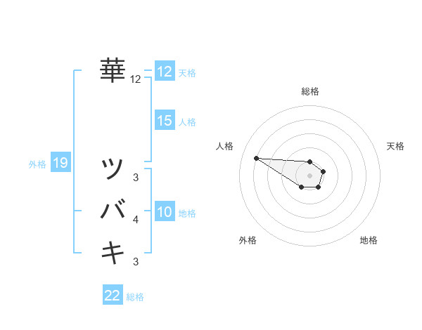 華 ツバキさんの総格は22画の1点!