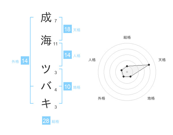 成海 ツバキさんの天格は18画の4点!