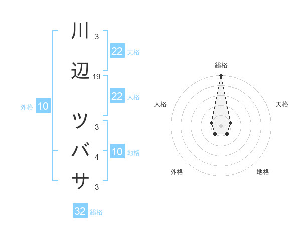 川辺 ツバサさんの総格は32画の5点!