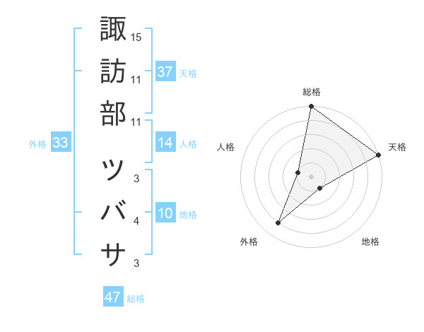 諏訪部 ツバサさんの総格は47画の5点!