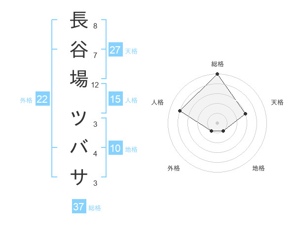 長谷場 ツバサさんを姓名の画数から五運を鑑定