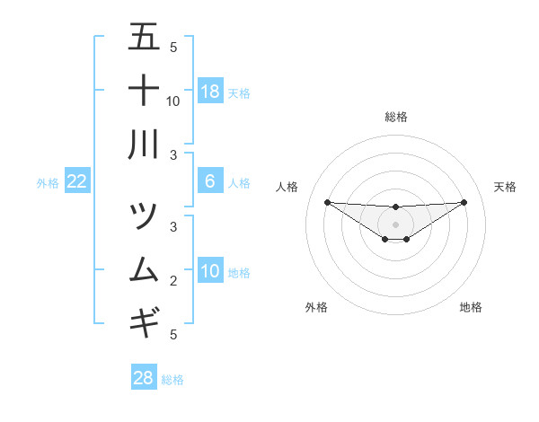 五十川 ツムギさんの天格は18画の4点!