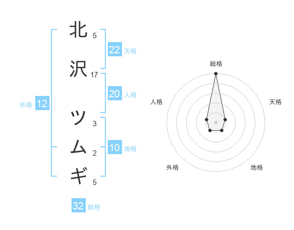 北沢 ツムギさんを姓名の画数から五運を鑑定