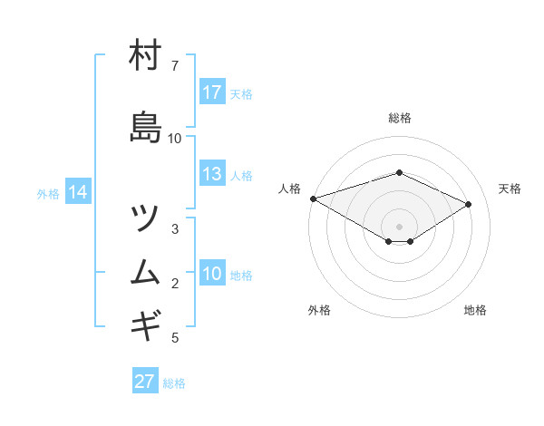 村島 ツムギさんを姓名の画数から五運を鑑定