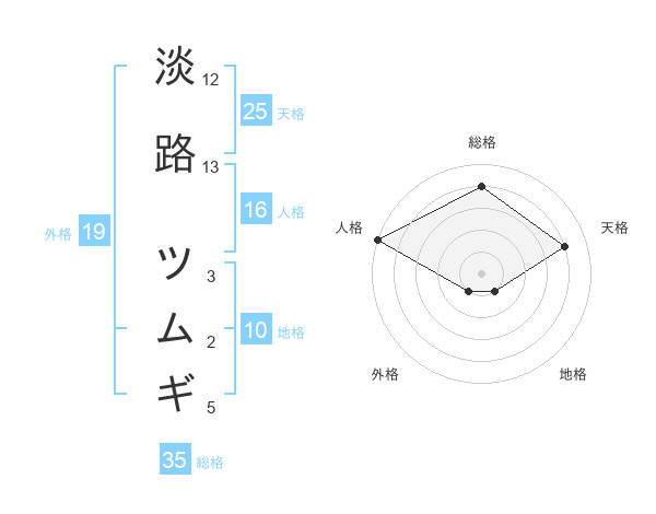 淡路 ツムギさんの総格は35画の4点!