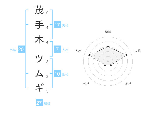 茂手木 ツムギさんを姓名の画数から五運を鑑定