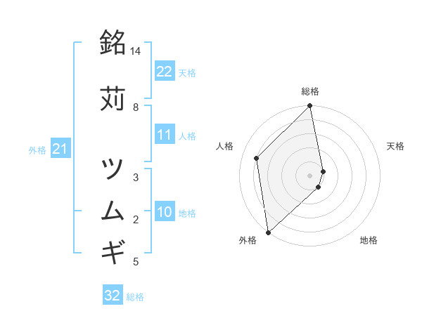 銘苅 ツムギさんを姓名の画数から五運を鑑定
