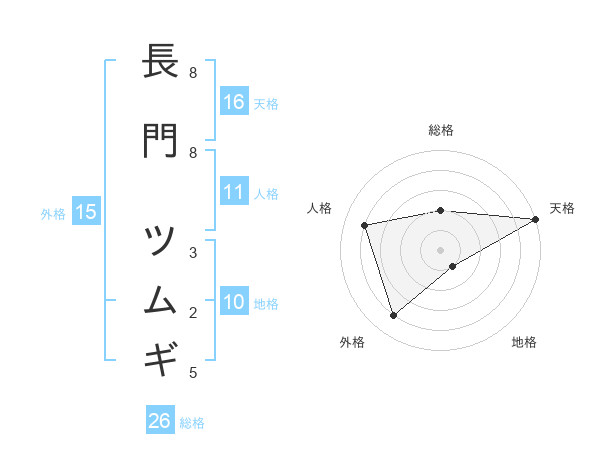 長門 ツムギさんの天格は16画の5点