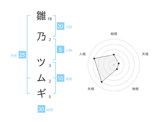 雛乃 ツムギさんを姓名の画数から五運を鑑定