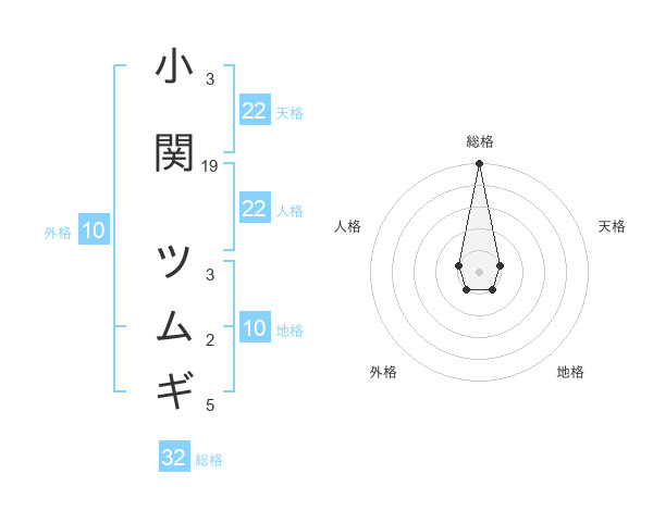小関 ツムギさんを姓名の画数から五運を鑑定