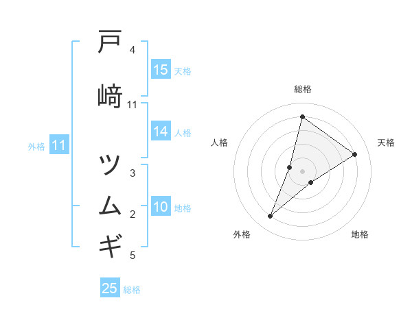 戸﨑 ツムギさんの総格は25画の4点!
