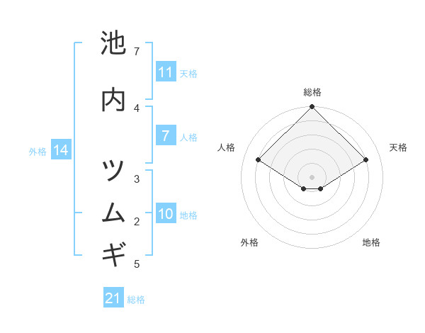 池内 ツムギさんの総格は21画の5点!