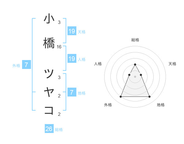 小橋 ツヤコさんの天格は19画の1点!