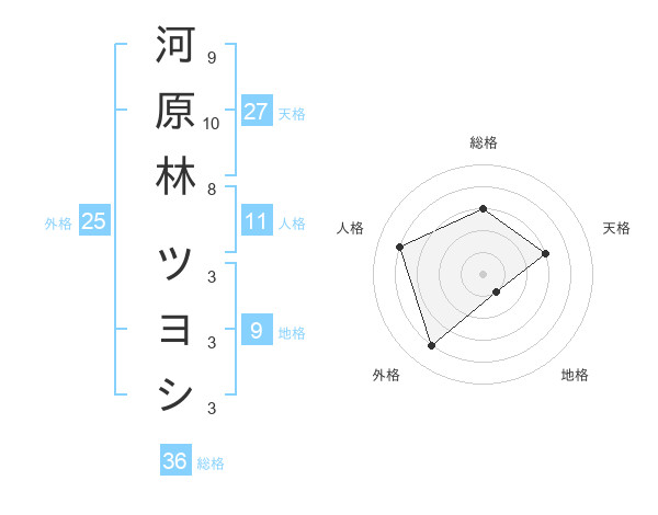 河原林 ツヨシさんを姓名の画数から五運を鑑定
