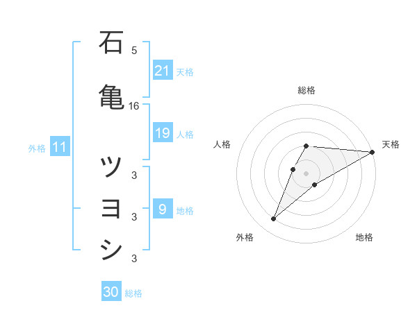 石亀 ツヨシさんの天格は21画の5点!