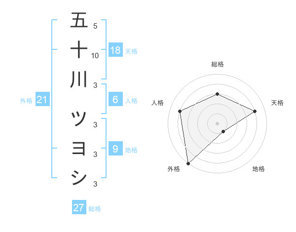五十川 ツヨシさんを姓名の画数から五運を鑑定